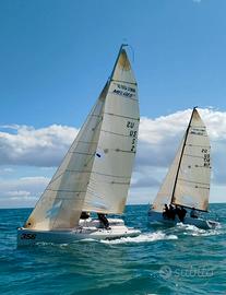 Melges 24 completo di carrello stradale revisionato e perfettamente marciante, due giochi di vele completi uno north Sail da allenamento serie gialla, uno olimpic sail come nuovo per regate. Sartie nuove e alcune scorte e drizze nuove.