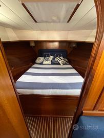 La disposizione interna è funzionale e concepita per la crociera: un ampio salone si apre verso la timoneria interna, mentre sottocoperta troviamo un'accogliente dinette conviviale, una spaziosa cabina armatoriale a prua, una seconda cabina doppia con letti a castello per gli ospiti e un bagno completo. La cucina è ben attrezzata, con piano d'appoggio, fornello, frigorifero e spazi intelligenti per lo stivaggio: perfetta per vivere la barca anche per più giorni in totale autonomia. Il tutto è valorizzato da numerose finestrature che garantiscono luminosità naturale e costante ventilazione.