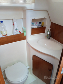 800 ore, elica di prua, eco e GPS, boiler acqua calda, fly prendisole con cuscineria, chiusura a camper completa, 2posti letto in cabina a prua più due posti in dinet trasformabile, bagno separato completo di doccia, per ora in acqua per possibile prova ma presto verrà tirata fuori, leggermente trattabile per rapida conclusione