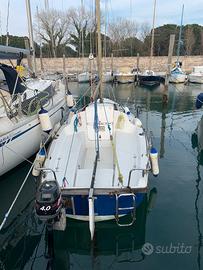 Barca sempre tenuta con cura da appassionato, in buone condizioni generali. Dotata di spinnaker nuovo con tangone, randa e fiocco, cuscini interni in pelle bianca nautica nuovi, fatti su misura a maggio dello scorso anno, tendine per gli oblò, ciambella salvagente, salvagenti indossabili, estintore, sartie di riserva, scaletta bagno, mordiscotte Harken e stick rimovibile.