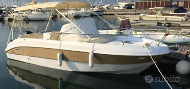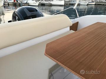 Vendo splendida Mimí 22 WA con Motore Mercury 150 cv tutto anno 2017, ore moto 280, unico proprietario, accessoriata con doppia batteria, carica batteria 220v con cavi, cucina, lavello, frigo, tavolo di poppa, letto matrimoniale in cabina, verricello salpa ancora elettrico con 50 mt di catena, timoneria idraulica Seafirst per motori fino a 350 cv, Gps ed ecoscandaglio Raymarine Dragonfly 5 Pro, con cartografia base, grande tendalino, teli per coperture console centrale, console blocco cucina/frigo e motore, stereo bluetooth Boss Marine con presa usb, prese 12 volt per ricarica cellulari, dotazioni sicurezza, parabordi con teli colorati, luci cabina, luci pozzetto a led, serbatoio benzina 220 litri, doccia con serbatoio acqua da 50 litri, in ottimo stato, rimessata sempre al coperto, tagliandi da officina autorizzata mercury con fatture.