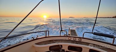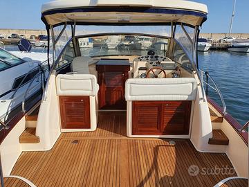 Mimì Libeccio 31 Cabin del 2009 Fuori tutto 9.30 larghezza mt. 3,48 Pescaggio mt. 0,60 – 1,10 omologata per 1 2 persone (kg. 1.080) MOTORIZZAZIONE Marca e Modello Motore: 2 x VM Motori modello MR 706 LH Carburante: Gasolio Revisione motori regolare Trasmissione: Linea d'assee elica 4 pale Velocità Massima: 34 nodi Velocità di Crociera: 20 nodi Serbatoio gasolio: 800 litri accioaio inox ACCESSORI E CONFORT Serbatoio Acqua: 1 x 200 litri acciaio inox Autoclave Presente Boiler Elettrico Tensione 12 / 220 V Carica Batterie Presente Rollbar vetroresina illuminato Vetreria pilotaggio nuova fumè ·Bagni: 1 bagno interno + 2 doccette esterne Cabine: 1 Cabina matrimoniale + 2 posti in dinette Cucina: 4 fuochi a gas, frigorifero, televisione, radio Wc Elettrico nuovo con doccia Serbatoio Acque Nere Serbatoio Acque Grigie Passerella Idraulica Filo corrente 220v per allaccio banchina Tavolo esterno in legno originale nuovo con 2 sedie tipo regista Tavolo interno perfetto Bussola Contagiri separati per motore Flaps idraulici regolabili Verricello Elettrico con catena da 50 metri Elettronica: GPS Navigatore Ecoscandaglio Furuno nuovo, predisposizione Radar, Radio VHF Cobra MR F77B GPSE nuovo Comfort: generatore elettrico per la massima autonomia, elica di prua, caricabatterie. Estetica: Teak in pozzetto, passavanti e coperta, mogano in dinette, cuscineria rifatta, tendalini. Visibile previo appuntamento.