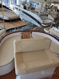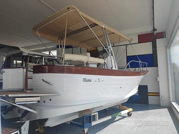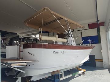 Il Mimì Libeccio 750 WA rappresenta la perfetta combinazione tra tradizione e innovazione, offrendo la qualità artigianale tipica del cantiere Mimì unita a prestazioni moderne e comfort elevato. Il design walkaround assicura una comoda circolazione a bordo, mentre la cabina accogliente e ben rifinita consente di vivere il mare in totale relax.