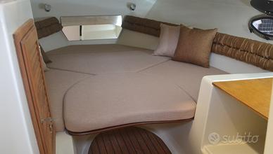 Consolle di guida con tientibene inox, parabrezza, volante e bussola;