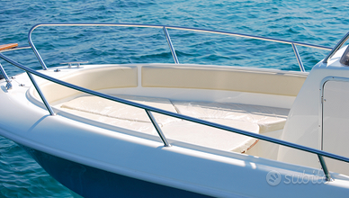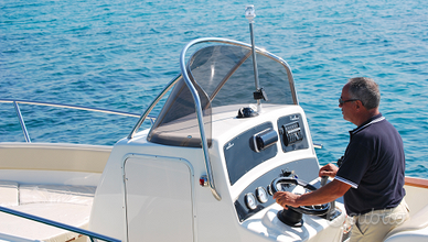 Consolle di guida con tientibene inox, parabrezza, volante e bussola;
