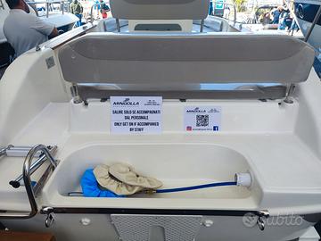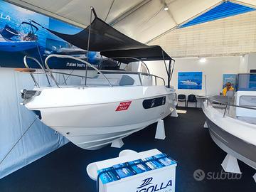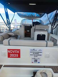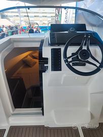 FRIUL NAUTICA CONCESSIONARIO UFFICIALE PER IL FRIULI PROPONE MINGOLLA BRAVA 28 WA DATI TECNICI: Lunghezza 8,15 mt larghezza 2,75 mt potenza max motore 400 cv persone trasportabili 8 categoria navigazione C posti letto 2 DOTAZIONI INCLUSE NEL PREZZO Musone di prua in acciaio inox, timoneria idraulica, luci di via e asta 360° regolamentari, scaletta di risalita inox, pannello interruttori, pompa sentina, serbatoio carburante 407 lt, impianto elettrico 2 batterie, porta estintore, bussola, oblò in acciaio inox, kit tavolo, tromba, impianto doccia, bagno con wc, panca guida con lavello e piano cottura, cuscineria completa cellula chiusa, aspiratore fumi carburante, plancette di poppa Motorizzabile con motori Honda Marine e Mercury Barca visibile a Marano Lagunare, ti aspettiamo per configurare insieme la tua prossima imbarcazione!