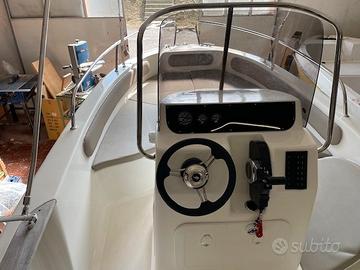 Mingolla Brava 18 (5,70 mt) con Honda BF40E del 2025, con 200 ore di moto, utilizzata solo estate 2025. Barca perfetta, come nuova, con doccetta, tendalino in acciaio inox, telo copri consolle e seduta, dotazioni di bordo complete. Prezzo di listino nuovo con motore honda e allestimento presente: 25800 compresa iva, super prezzo 19200. Barca visibile presso cantiere Ferrario Nautica a Dormelletto (no).