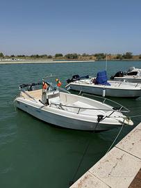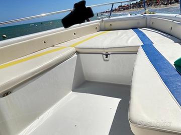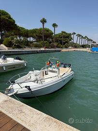 Vendo imbarcazione Mingolla Yung 16 in buone condizioni, corredata di motore Yamaha 40 CV a carburatore anno 2001 con circa 600 ore di utilizzo e trim elettrico. La barca è stata recentemente aggiornata con la sostituzione della scatola dello sterzo nel 2024 ed è dotata di ecoscandaglio Garmin Striker 7 con sonda trasduttore GT20 nuova. Presenta due portacanna da incasso e due girevoli a 360 gradi e 3 porta canne da riposo, dotazioni di sicurezza complete (anulare e giubbotti, estintore), doppie chiavi, tendalino acquistato prima dell'estate 2025 e cuscineria nuova mai usata. Dispone di due ampi gavoni, uno a prua e uno a poppa, e di pompa di sentina sia automatica che manuale.
