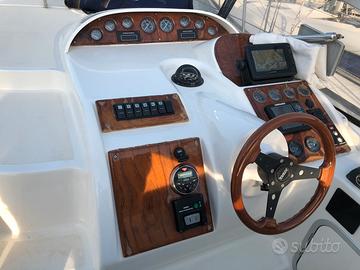 Vendo Mira 37 motorizzato Kad 44 diesel 2x260 in ottime condizioni. Ore moto: 630h Equpaggiamenti: Gps,Eco,Elica di prua,vhf,radio stereo,boiler. Principali lavori svolti: Turbine revisionate 2024 Riser nuovi 2023 e 2024 Piede nuovo dx 2024 Ingranaggi nuovi Piede sx 2024 Revisione motorini avviamento 2023 Motorini elettrici dei due wc nuovi 2025 Alternatore dx nuovo 2026 Alternatore di scorta revisionato 2026 Caricabatterie nuovo 2025 Sostituzione teak 2025 Crystal dei tendalini nuovi 2024 Tappezzeria della cuscineria esterna nuova (una sfoderabile in tessuto a righe maestrale oleo e idrorepellente, e sotto nuova ecopelle bianca come l’originale) Installato Gps Eco Garmin 2023 Installata stereo 2023 Nuovo vhf 2023 Le foto degli esterni sono con le fodere sfoderabili a righe (nuove) sotto le quali i cuscini sono con la tapezzeria in ecopelle bianca (anch’essa nuova). La barca viene consegnata con tagliandi e antivegetativa fatta 2026 come ulteriore sconto!! La barca e’ perfettamente funzionante e pronta per la navigazione. Prezzo 86000€. Per informazioni contattare il numero 3471223722