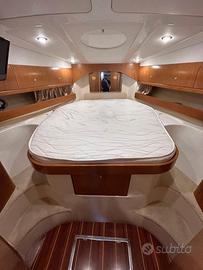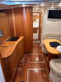 INTERNI: 1 Cabina matrimoniale armatoriale di prua; 1 Cabina matrimoniale di dritta; 1 Cabina Doppia con letti in piano; 2 Bagni completi di lavabo, doccia e WC marino elettrico; 1 Salone completo di divano, tavolo e TV; 1 Cucina completa di lavandino, frigo, piastra induzione e forno microonde. Strumentazione: GPS; Ecoscandaglio; VHF; Pilota automatico; Plotter; Contametri catena; Comando motori elettronico; Elica di prua ;Flap idraulici; Indicatori Flaps; Aria condizionata in tutti gli ambienti.
