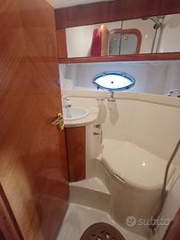 CABINA CON LETTO MATRIMONIALE A PRUA E 2 CABINE DI POPPA CON LETTI SINGOLI IN PIANO TRASFORMABILI, TENUTA DAVVERO IN OTTIME CONDIZIONI, FUNZIONALE E FUNZIONANTE IN OGNI SUA PARTE, 2X265 VOLVO CON MANUTENZIONE REGOLARE, PIEDI DUO PROP PERFETTI ED ELICHE IN ACCIAIO.