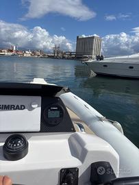 Pari al nuovo , unico proprietario , gommone e motore 2023, motore yamaha f40g supreme 40/70 con 90 ore di moto certificate , tagliandi certificati in concessionaria yamaha, roll bar su misura , ecoscandaglio Simrad, ancora bruce cromata con 30 metri di cima , stereo con 2 casse hertz + HMR 15 . Dinette di poppa con tavolo regolabile . Scaletta 4 gradini , prese usb e accendisigari osculati . Monta fino a 150 cv Vendo anche senza motore .