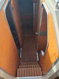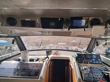 Accessori:Riscaldamento pannello radiante, Gruppo elettrogeno,Ecoscandaglio e Gps,Impianto stereo con casse da 600WAutopilota,Vhf portatile,Cuscineria interna/esterna completa,Tendalineria completa,Moquette e tappezzeria nuova nelle cabine,Calpestio in flexiteak eva interno ed esterno,Pannelli solari 2,Batterie 3,Plancetta allungata,Wi-fi,inverter,presa banchina,12 e 220V,Bolier acqua calda interna ed esterna.2x250 lt serbatoi PVC acqua.