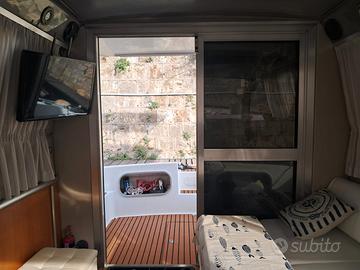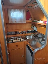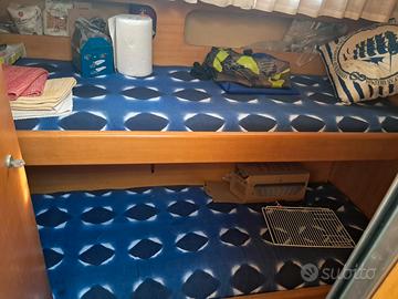 Interni: Cabina armatoriale di prua con porta, cabina con letti a castello con porta, dinette trasformabile in matrimoniale. Cucina con 2 fuochi gas. Lavello. Frigo. Bagno separato con wc elettrico, maceratore con scarico diretto.