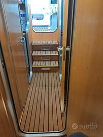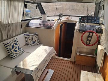 Cabina armatoriale di prua con porta, cabina con letti a castello con porta, dinette trasformabile in matrimoniale. Cucina con 2 fuochi gas. Lavello. Frigo. Bagno separato con wc elettrico, maceratore con scarico diretto.