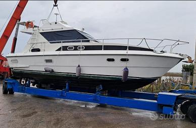 motore sinistro sbarcato e rifatto: cilindri, turbine, raiser, prese mare, filtri acqua di mare. Velocità crociera 18/20 max 28 knots. 2x300lt serbatoi carburante inox.