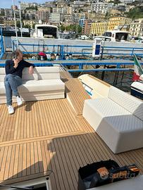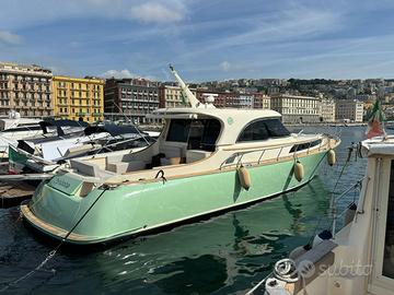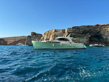 Mochi Craft 51 Dolphin (2004) – Condizioni Eccellenti Splendido "New Lobster Yacht" ispirato alle classiche imbarcazioni del New England, che coniuga il fascino del design retrò firmato Victory Design con la tecnologia e il comfort moderni. Barca in ottime condizioni, pronta alla boa. Caratteristiche Principali: Motorizzazione: 2 x MAN 800 CV (prestazioni superiori rispetto alla motorizzazione standard) Velocità: Crociera circa 22 nodi, massima oltre 30 nodi. Design: Carena Deep Vee a diedro costante per una navigazione stabile e morbida anche con mare formato. Layout e Comfort Esterni: Pozzetto: Ampio e spazioso, dotato di angolo bar, n.3 divani di poppa, teak su piano di calpestio in ottimo stato, tendalino prendisole elettrico. Sistema di alaggio tender a livello mare nello specchio di poppa (senza bisogno di gru). Deck House: Luminosa con tetto apribile elettricamente e vetrata a scomparsa che crea un open-space unico con il pozzetto con mobili interni raffinati in stile classico, ampio divano a C con tavolo da pranzo, cucina con doppio lavello, piastre elettriche, ampio frigoriferifero, forno. Dinette per 6 persone, mobile bar, TV e impianto Hi-Fi. Cabina Armatoriale: A prua, con letto matrimoniale in piano rialzato e bagno privato con locale doccia. Cabina Ospiti: Con due letti singoli in piano. Servizi: Secondo bagno ospiti completo di wc elettrico e locale doccia. Cabina Marinaio: Con servizio dedicato. Accessori e Dotazioni: Aria condizionata in tutti gli ambienti. Elettrogeno Mase 9000 W. Verricelli elettrici e boiler da 50 litri. Vano motore insonorizzato con scarichi silenziati. Serbatoio carburante: 2.250 litri. Radar furuno. Accettasi permute: Austin Parker, Solaris Power, Apreamare, Fjord, Pardo, Rio, Sessa. Richiesta: 250.000+saldo Finanziamento