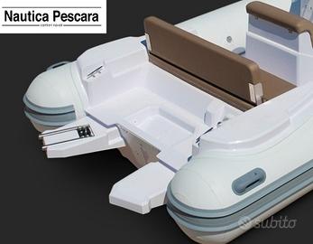 La consolle centrale completamente riconcepita integra ora anche un sedile a prua, mantenendo il pratico sedile di guida multifunzione centrale. Il comodo sedile di poppa, l'ampio prendisole di prua, gli svariati e capienti gavoni uniti alla generosa struttura in VTR permettono una navigazione ricca di confort ed in totale sicurezza.
