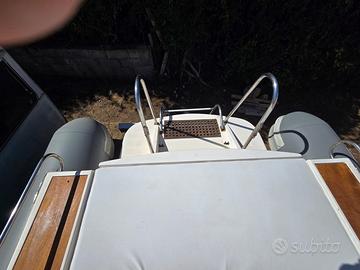 ll Modulo M è un gommone progettato per offrire grande stabilità e comfort grazie alla sua chiglia in vetroresina, con finiture curate e materiali di qualità. Ideale per uscite giornaliere e attività diportistiche, unisce la praticità di un gommone alla solidità di uno scafo rigido. Dati tecnici scafo: Lunghezza: 7,80 m, larghezza 2,50m, chiglia: vetroresina (VTR), carrellabile, facilmente trasportabile. Carena con antivegetativa HM (matrice dura) recentemente applicata Tubolari nuovi con garanzia fino al 02/2027. Mercruiser 4.3 L Alpha One, entrofuoribordo. Potenza: 235 HP. Tagliando motore già effettuato Piede poppiero completamente revisionato Affidabilità e performance ideali per crociere giornaliere o brevi trasferimenti. Consolle centrale e tendalino in acciaio inox, plancia posteriore VTR comfort con scala in acciaio inox, verricello elettrico a prua con catena e ancora Danfort, serbatoio benzina in acciaio inox, strumentazione elettronica completa, ecoscandaglio, due pompe di sentina, due batterie nuove, tientibene perimetrali, cuscineria di poppa e prua nuove, varie dotazioni di sicurezza e bordo incluse. BELLISSIMO Tutti i contenuti (caratteristiche, metrature, accessori, ecc. ) degli annunci sono puramente indicativi, potrebbero contenere imprecisioni o errori, pertanto non comportano nessun vincolo contrattuale. Il prezzo è soggetto a mediazione agenzia. Gli acquirenti hanno diritto di ispezionare personalmente l'oggetto e/o di sottoporre il natante a perizie a loro spese, il mediatore non può essere considerato responsabile delle probabili inesattezze qui riferite. Consigliamo di visionare sempre l'oggetto prima dell'acquisto.