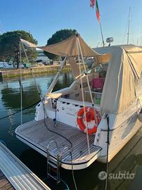 Vendo Monterey 256 cruiser con motore diesel iniezione elettronica 230Hp FPT AIFO 3000 16V dai consumi molto bassi x la sua potenza. Piede poppiero Volvo penta Dp. La barca è accessoriata di flap idraulici, salpa ancore elettrico, passerella amovibile con attacco a poppa x sbarco ,scaletta inox sul giardinetto ,faro Guest elettrocomandato, VHF, GPS, ecoscandaglio ,TV 12v e 220v, antenna TV Glomex ,autoradio con 2 casse in cabina e 2 sul roll bar nautiche,bussola, autoclave, doccetta a poppa con miscelatore acqua fredda e calda, boiler nautico isotemp, una pompa di sentina automatica, una automatica e manuale, una manuale autoadescante in paratia, carica batterie da banchina shark,2 batterie 100 ah, quadro elettrico 220 volt e 12 volt con interruttori termici di sicurezza, frigorifero in cucina 12volt e 220, fornello a 2 fuochi con Bombola camping gas installata fuori cabina x sicurezza, luci a LED nell'abitacolo. Imbarcazione ben tenuta, molto comoda e spaziosa ideale per campeggio nautico, dotata di doppia cabina, bagno separato con we elettrico, lavandino ,cucina e dinette e giardinetto da poppa prolungato con copertura in vero teak x ospitare tranquillamente un tender. Motore e piede poppiero sempre tagliandato ed eseguite tutte le manutenzioni preventive da officina specializzata. La barca viene consegnata con motore e piede tagliandati, manutenzioni e antivegetativa. Garantita pronta x la navigazione.