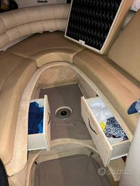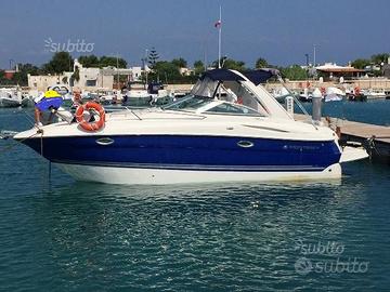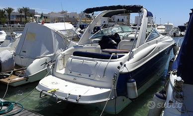 MONTEREY 295 SC Americana, 27 piedi italiani. del 2008 Lunga mt 8,80 Larga mt 2,55 con motore nuovo Volvo Penta 5.7 GXi- Duo Prop appena completato il rodaggio con 80 ore di moto, batterie nuove 2024 e una 2025, Riser sostituiti a Giugno 2025, usata solo tre mesi l'anno, rimessaggio invernale e manutenzione presso officina autorizza Volvo Penta dimostrabile con fatture.. Serbatoio carburante 300 lt. Serbatoi acqua 100 lt. Serbatoio acque nere 100 Lt, Flap idrauli Gps Nav-station6, VHF, Impianto stereo Grunding con comandi esterni in plancia di comando. Cabina prua armatoriale 2 posti letto, armadietto e due cassetti ricavati nei gavoni. Seconda cabina con altri due posti letto Cucina ad induzione con dispensa, frigo e Micronde Bagno separato con wc elettrico e doccia, Telo copertura trasporto, chiusure camping Lavabo esterno più doccia esterna con acqua fredda e calda anche senza presa 220 V. Doppio quadro elettrico per gestione servizi 12 V e 220 V. Tendalino parasole. Velocità di planata a 12 nodi, crociera 25 nodi, max ancora da testare. Luci Subacquee di poppa più faro di profondità. VISIONABILE PRESSO SNIM BRINDISI DAL 9 AL 13 OTTOBRE 2025, PREVIO APPUNTAMENTO.