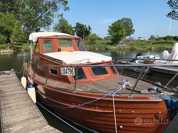 Barca in fasciame di mogano. Buona condizione. Motore Nanni 40250 (NO PATENTE). Cuscineria completa e come nuova. Interni completi di cuccetta due posti. WC marino separato, frigorifero e salpa ancora elettrico. Visibile a Portegrandi (VE)