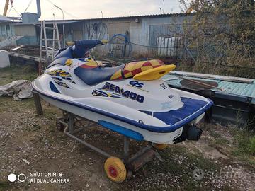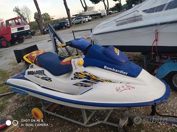Vendo moto d'acqua Sea-Doo Bombardier GS, colore bianco/blu/giallo, in buone condizioni generali.