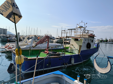 Motopesca in vrtroresina. 3 Gt. Lunghezza 11,60 larghezza 3,50. 2 motori aifo CP3-M revisionati. Invertitori nuovi Twin-disk ratio 1,50. Licenza ,attrezzo principale,circuizione chiusura meccanica(PS) attrezzi secondari,nasse,reti da posta,palangari. Strumentazione, radar,2 ecoscandagli,plotter navigatore. Impianto elettrico nuovo. In dotazione, salpareti in acciaio,completo di riduttore e motore. Verricello salpa cavi in acciaio, salparete per cianciolo in acciaio, rete cianciolo per alici. Gru da revisionare o sostituire.
