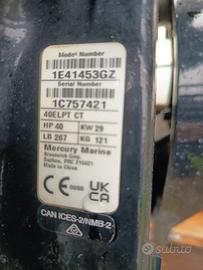 Vendo motore Mercury modello Pro 40 cv 4 tempi , con circa 200 ore di moto. Visionabile...
