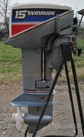 Motore Evinrude 15 cv 2T a gambo corto del 1981 con libretto. 2 cilindri. Cilindrata 217 cm3. Consumo 6,92 l/h. Peso 29,5 kg. Il motore si accende ed è funzionante, ma ha dei cali di potenza e si surriscalda più del normale.