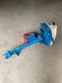 Motore fuoribordo Ducati Cucciolo 5 HP, modello storico e ormai raro, completo di serbatoio esterno rosso.