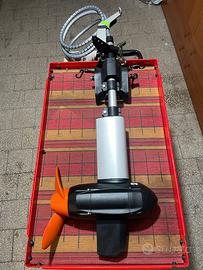 Vendo completo di: - Batteria 915 Wh + carica batteria - cavo prolunga batteria/motore - telecomando + 2 chiavi - cavo prolunga telecomando - piastra posteriore torqeedo - piastra adattatore per hobie pro angler 14 Tutto perfettamente funzionante ed in ottimo stato. Si preferisce scambio a mano soprattutto per constatare l’efficienza ma mettendoci d’accordo posso anche spedire. Offo e Richiedo serieta Ultra-potente. Ultra-efficiente. Ultra-furtivo. Torqeedo Ultralight 1103 AC studiato per Kayak e piccole imbarcazioni, ideale per il Kayak Fishing. Il nostro ultraleggero ultraleggero 1103 AC si adatta a tutti i più diffusi tipi di kayak e canoe. Caratteristiche: Comparazione potenza 3 HP Potenza ingresso 1100 watt Tensione nominale 29.60 volt Tensione fine carica 33.60 volt Potenza di avanzamento** 540 watt Grado di efficienza totale 49% Spinta statica 32(70) Kgf (Ibf) Peso totale 15,3 Kg Batteria batteria litio manganese 915 Wh Lunghezza max gambo 51 cm Elica std v10/p1100 Comando telecomando elettronico multifunzione a distanza Sterzo fissabile al timone Sistema di tilt manuale Sistema di assetto 4 posizioni Marcia avanti-indietro continua Computer integrato con display
