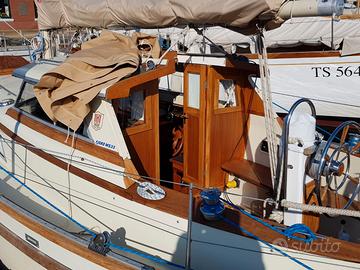 Motoveliero Motorseiler barca a vela Classico Fjord 33MS del 1975 Unico esemplare introvabile nelle stesse condizioni! E' una barca classica da crociera mantenuta in condizioni maniacali, ideale per chi cerca un'imbarcazione affidabile e storica. Caratteristiche principali: Motore: Perkins 4108 da 53 HP (serve patente) manutenzionato annualmente e perfettamente funzionante (consumo 2,5 L/ora) Anno: 1975 Lunghezza: 10m Larghezza: 3,21 m Pescaggio: 1,35 m Dislocamento: 7.000 kg Materiale scafo: Vetroresina Capacità passeggeri: 10 Cabine: 2 Cuccette: 3 Bagni: 1 Equipaggiamento a bordo: Doppia timoneria (interna ed esterna) Doppio strallo Randa full-batten Salpancora elettrico da 1.200 watt Pilota automatico Serbatoio carburante: 200 L Serbatoio acqua: 200 L Ultima manutenzione: Antivegetativa e trattamento antiosmosi eseguiti nel 2026 (6 marzo scorso) Cavi di controllo interni ed esterni nuovi, insieme alla sostituzione della manetta esterna La barca non è immatricolata, ma è stata declassata a natante (9,99 m) per agevolare la gestione e la navigazione. Per ulteriori informazioni o per ricevere foto dettagliate degli interni ed esterni, non esitate a contattarmi fornendo il vostro numero di telefono. Vendo per inutilizzo ed eventualmente permuto camper anche di valore superiore. Grazie