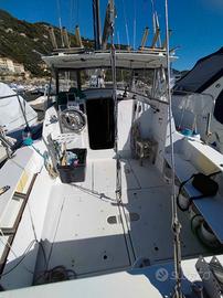 Buon motorsailer sempre mantenuto e pronto per la navigazione . 4 posti letto cucina frigorifero wc elettrico separato . Ottimo motore yanmar 40 cavalli ecoscandaglio GPS e pilota automatico . Impianto elettrico rifatto cambiati serbatoio gasolio e acqua. 3 pompe di sentina , 2 elettriche di cui 1 automatica e pompa acqua di mare . Attualmente in uso con allestimento per la pesca , con ottimi risultati, ma riconducibile alle sistemazioni iniziali . Possibilità posto barca con costo a parte , visibile a Finale Ligure