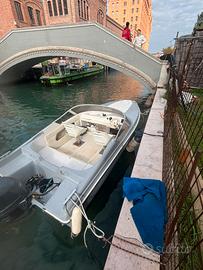 Barca visibile su appuntamento, pronta per la prova in acqua.
