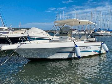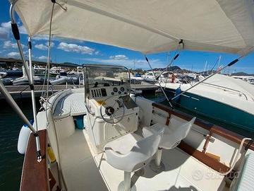 Motoscaffo Sessa Key Largo 20" in buone condizioni, omologato per 7 persone ed equipaggiato di salvagenti, ancora e salpancora elettrico, tendalino fisso con telaio in acciaio inox e telo azurro e un secondo dendalino mobile con struttura in alluminio piegabile, serbatoio per acqua dolce con ripettiva doccetta, 4 parabordi, ecoscandaglio GPS con cartografia a colori e un FishFinder. Lo scaffo è del 1994 in ottime condizioni, monta un motore Mercury F 150 L EFI 4 tempi 3000 cm³ del 06.06.2019 con sole 191 ore di navigazione (NUOVISSIMO).