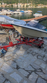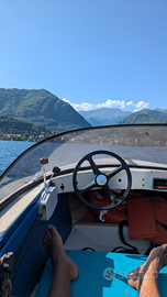 Omologato per quattro persone, motore evinrude sporster 20cv funzionante. Le panchette anteriori possono essere ribaltate per permettere di sdraiarsi (due persone) Serbatoio 30 litri, motore revisionato l'anno scorso. No carrello, no ormeggio