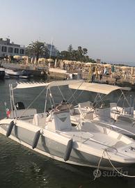 Orizzonti Andromeda varata nell'anno 2023 con appena 100 ore di moto. Lunghezza 6,20 mt × 2,30 mt di larghezza, omologata per trasporto di 7 persone, motore Mercury da 40CV per 130 Hp di potenza, senza patente nautica. Scafo performante che consente di planare facilmente anche a pieno carico e/o a bassa velocità. Prendisole di prua particolarmente capiente, gavone dell'ancora predisposto per montaggio vericello elettrico, ispezione serbatoi agevole grazie alla consolle ribaltabile, passaggi laterali generosi, ampio prendisole trasformabile in dinette con tavolo, seduta guida ribaltabile, pareti sponde interne imbottite, comode plancette bagno di poppa, scaletta bagno acciaio inox, tendalino a quattro archi, frigo, ecoscandaglio, impianto stereo bluetooth con quattro casse. L'imbarcazione ha effettuato regolare tagliando e viene proposta in saldo ad euro 18.500