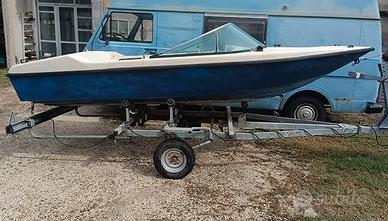 Privato Vende Contatto 338-4951091 Motoscafo d'epoca con una linea aereodinamica bellissima tipica anni 70-80-90 lunga circa 4,4 m Ottima base di restauro per appassionati e per personalizzarla a piacimento Scafo in buono stato, interni completamente da realizzare e personalizzare, può ospitare 2 panche di sedili per 4/6 persone Ottima per mare, costa, lago Il carrello è un Ellebi omologato per trasposto imbarcazioni lunghezza max 5,2 metri la prima foto potrebbe rappresentare la barca a lavoro di restauro terminato se la si vuole lasciare in stile classico Vendo Barca + carrello a 900 euro Possibilità di Motore Johnson a parte 25Hp da restaurare Posso trasportare fino ai comuni limitrofi Contatto 338-4951091 Marco