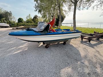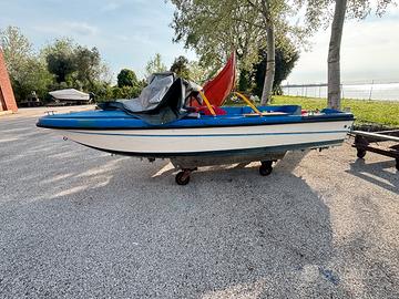 Vendo barca tipo patana caico cofano 4,60 m circa in vetroresina con tiemo . Visibili al Lido di Venezia Prezzo 300 €