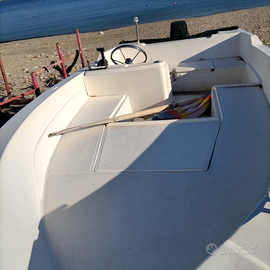 Barca di 5 mt vetroresina scafo planante,carrello non omologato+ do 3 motori in blocco Mercury America gambo XL lungo e corto da 25 CV con libretto da revisionare ,i motori sono fermi da qualche anno .. erano tutti e tre funzionanti..