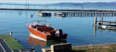 Splendido motoscafo d'epoca in legno di mogano realizzato dai cantieri ferraresi dai maestri d'ascia della Riva. Perfettamente restaurato. Motore Suzuky 40 cv senza patente. Carrello stradale con targa e libretto