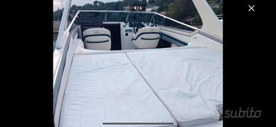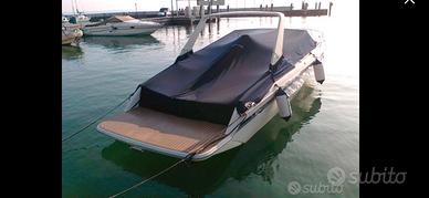 Glastron Barracuda Laraya 790 Anno di costruzione: 1991 Sono il terzo proprietario mia dal 2020. Sempre acqua dolce, in acqua nei 4 mesi estivi e sempre coperta in capannone da ottobre a maggio. Lunghezza (fuori tutto) 8,50m, lunghezza scafo 7,90 m, Larghezza 2,70m Motorizzazione: 2x Mercruiser 4.3LX V6 alpha one benzina a carburatori, 225HP x2 tot 450 HP (ore motori tot 566 al 26/07/25) La barca ha un'ottima navigazione (supera i 40 nodi), ampia zona prendisole di poppa e cabinato con 2 posti letto. Accessori principali: tendalino parasole, spiaggetta di poppa xxl, tavolino rimovibile, salpa ancora elettrico, impianto doccetta acqua dolce, lavandino, Wc, radio Bluetooth 2024, ecoscandaglio 2024; Interventi di manutenzione 2025: manutenzione generale imbarcazione, rettifiche motori e piedi con revisione completa e tagliando. Fatture disponibili. La barca si trova in capannone a Castelnuovo del Garda . Cedo per mancanza di tempo per godermela. No permute o scambi. Trattabile solo di persona, disponibile a farla provare in navigazione. Saluti.