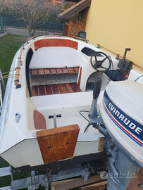 Vendo per inutilizzo motoscafo Molinari Envirude comprensivo di carrello, due motori (uno di supporto per emergenza), tendalino, cuscini nuovi e legni da poco riverniciati. Il carrello deve fare revisione. Mai stazionato in acqua ma sempre al coperto. Prezzo leggermente trattabile. NO PERDITEMPO