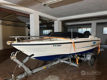 Motoscafo perfettamente funzionante tagliandato pronto per essere messo in acqua completo telo copribarca carrello possibilita di posto in affitto stagionale a parte , vari accessori e dotazioni cime ormeggio stereo pompa di sentina piu una di sicurezza luci di navigazione salvagenti motore tagliandado da meccanico documentabile vendo per passaggio a altra barca