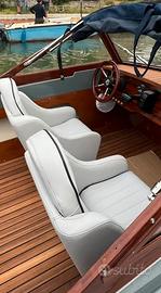 Splendido motoscafo di 5,60 x 1,90 completamente restaurato da storico cantiere veneziano con materiali e lavorazioni di alto livello. Barca dal design del celebre progettista Sonny Levi, considerato uno dei padri del moderno design delle barche a motore. Linee eleganti senza tempo, carena veloce e grande stabilità. Restauro completo realizzato con grande attenzione ai dettagli. Lunghezza 5,60 m Larghezza 1,90 m Pagliolato in teak massello Plancia e lavorazioni in mogano vernice lucida Parabrezza in mogano doppio vetro omologato Trim tab Lenco con pannello di controllo Timoneria idraulica Ultraflex per motori fino a 200 cv Monoleva Yamaha Doppia strumentazione con GPS kmh o miglia Impianto luci LED interne ed esterne Impianto stereo nautico Hertz con amplificatore e bluetooth Doppia presa USB Interruttori acciaio retroilluminati Pannello fusibili Impianto elettrico completo omologato Serbatoio benzina fisso 110 litri omologato con sfiato esterno Serbatoio acqua dolce 55 litri con autoclave e doccia a scomparsa Pompa di sentina con galleggiante automatico Filtro decantatore carburante Stacca batteria elettronico Batteria 80 Ah con box isolante Sedili nuovi modello Abbate tappezzeria Delfino Tendalino sole Tendalino pioggia e messa a notte nuovo con struttura in acciaio inox Telo copri plancia Maniglia passeggero acciaio inox Tasche portaoggetti vernice lucida Dotazioni comprese Parabordi Cime Cime elastiche Faro di profondità in acciaio con joystick e doppio fascio luminoso Tergicristallo Vetus a scomparsa 2 velocità Motore Yamaha 115 cv Gambo XL Anno 2010 330 ore Elica acciaio Copri motore su misura Doppia chiave Sempre tagliandato e perfettamente funzionante Prezzo 23.500 euro completa di motore Possibilità vendita solo barca senza motore Prezzo 17.900 euro Barca elegante e di grande qualità costruttiva, perfetta per laguna, lago o mare. No perditempo. Barca pronta per la stagiome Tag suzuki brube cofano mercury mt topeta amadi rio silentcraft