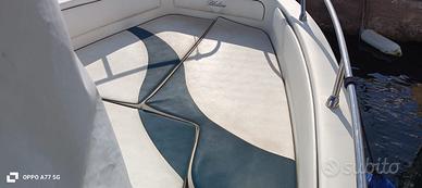 La barca è completa di tendalino sole originale, telo copri consolle, impianto doccia acqua dolce, ecoscandaglio, gps, cuscineria completa a cellula chiusa e invasatura per la sosta a terra.