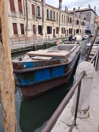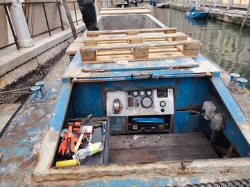 Vendesi mototopo in ferro lunghezza 11.80 larghezza 2.45 funzionante e con collaudo valido fino a marzo 2029 motore aifo funzionante barca utilizzata quotidianamente viene venduta priva di cassone che ha una portata di 6 mc vendo per passaggio a barca in vetroresina chiamate o whatts app barca visibile in Rio delle burchielle (Venezia)