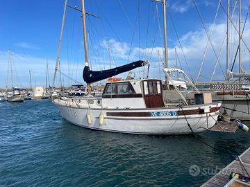 Affascinante motoveliero in legno del 1961, costruito dal cantiere Rondolini di Pesaro. Barca con grande carattere, ideale per appassionati del legno o per chi cerca un progetto già navigante da personalizzare. Lunghezza 10,74 m – larghezza 3,13 m Motore Aifo entrobordo affidabile Posti letto 5 Armamento cutter (ex ketch) Dotazioni: GPS, pilota automatico Raymarine, VHF, salpa ancore elettrico, rollafiocco, vele refittate, serbatoio inox 200L, doppio impianto filtraggio gasolio. Negli anni sono stati eseguiti diversi lavori importanti (vele, rollafiocco, batterie, impianti, plancetta di poppa, ecc.). La barca è funzionante e attualmente in acqua a Brindisi. Richiede normali interventi di manutenzione/miglioria tipici per un’imbarcazione in legno della sua età. Vendita per trasferimento all’estero. Prezzo già allineato per vendita veloce, considerati i costi di gestione. Ottima occasione per appassionati.