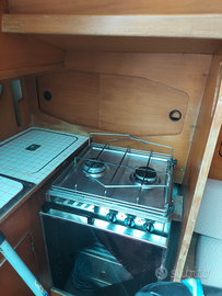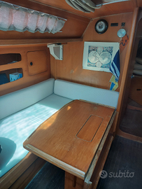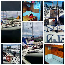 Vendo Mousse lung.9,07 larg.3,05 pr.1,75 stazza 5 ton,natante,navigazione entro 6 miglia ,6 posti letto, 8 in navigazione.mot.Farryman 18 hp, Randa 17 mq,Genoa avvolgibile 35mq,fiocco 20mq,drifter 45mq , olimpico14 mq. Navigatore GPS Garmin,pilota automatico walker,eco plastico, bussola, salpa ancore Quick 2000W, ancora Bruce originale 20kg,80mt catena calibrata 12mm. cucina e forno gas Cam, 2 serbatoi inox 300lit. Acqua pompa a pressione. Serbatoio gasolio 80 litri. Copriranda,cuscini pozzetto, 6 parabordi grandi. Visibile a Marina Santandrea. SanGiorgioNogaro.